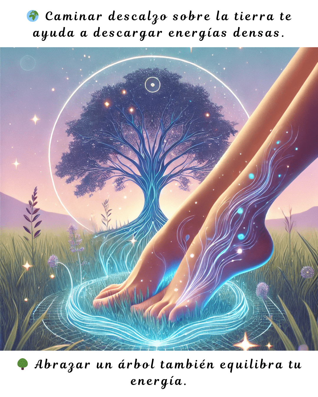 Caminar descalz@ sobre la tierra o abrazar un árbol descarga lo denso y recarga lo esencial.