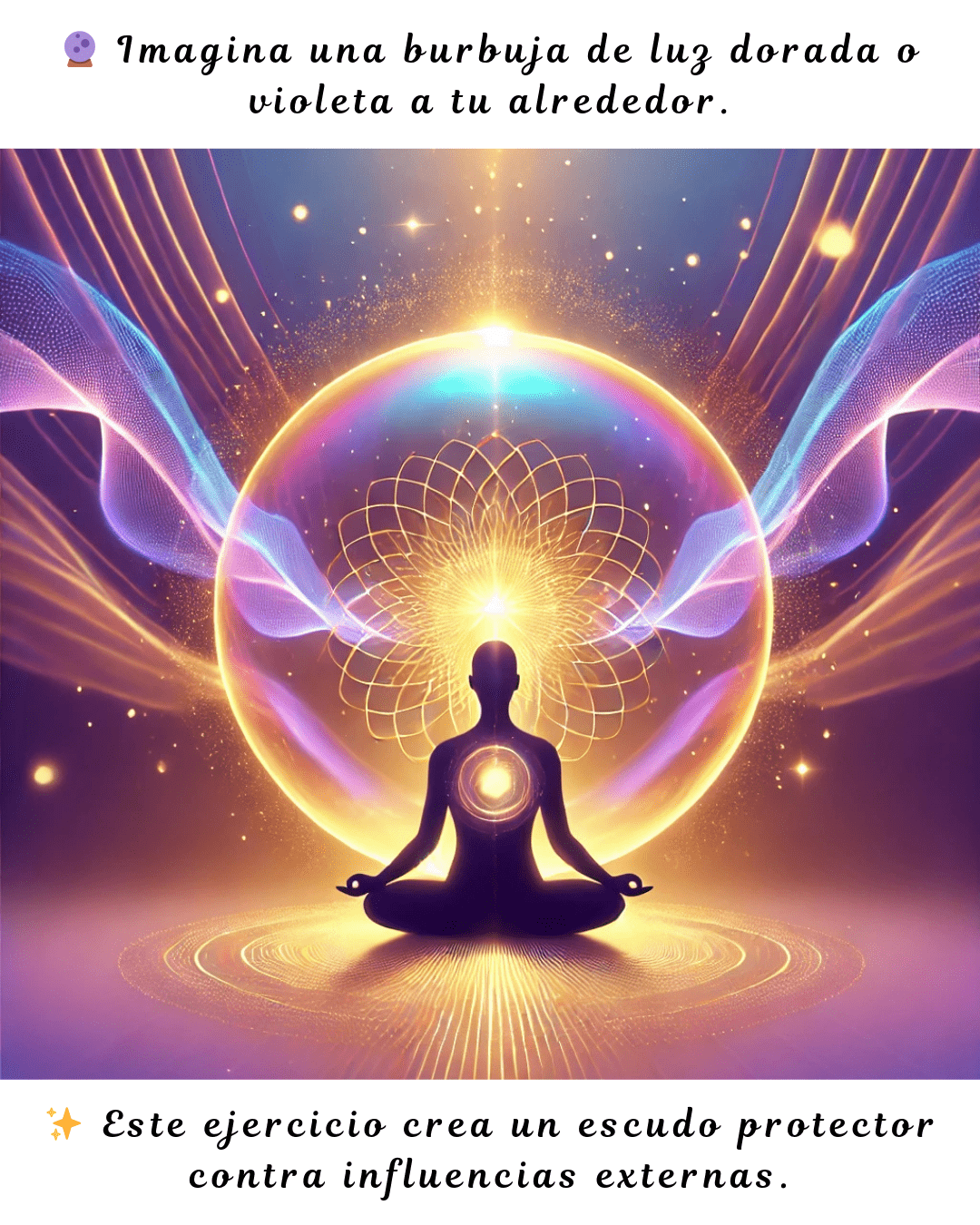 Imagina una burbuja de luz dorada o violeta rodeándote.