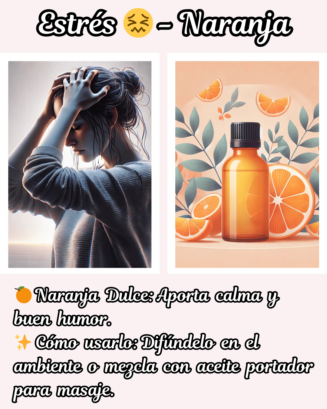 🍊 Estrés → Naranja dulce: aporta paz interior y una chispa de buen humor.