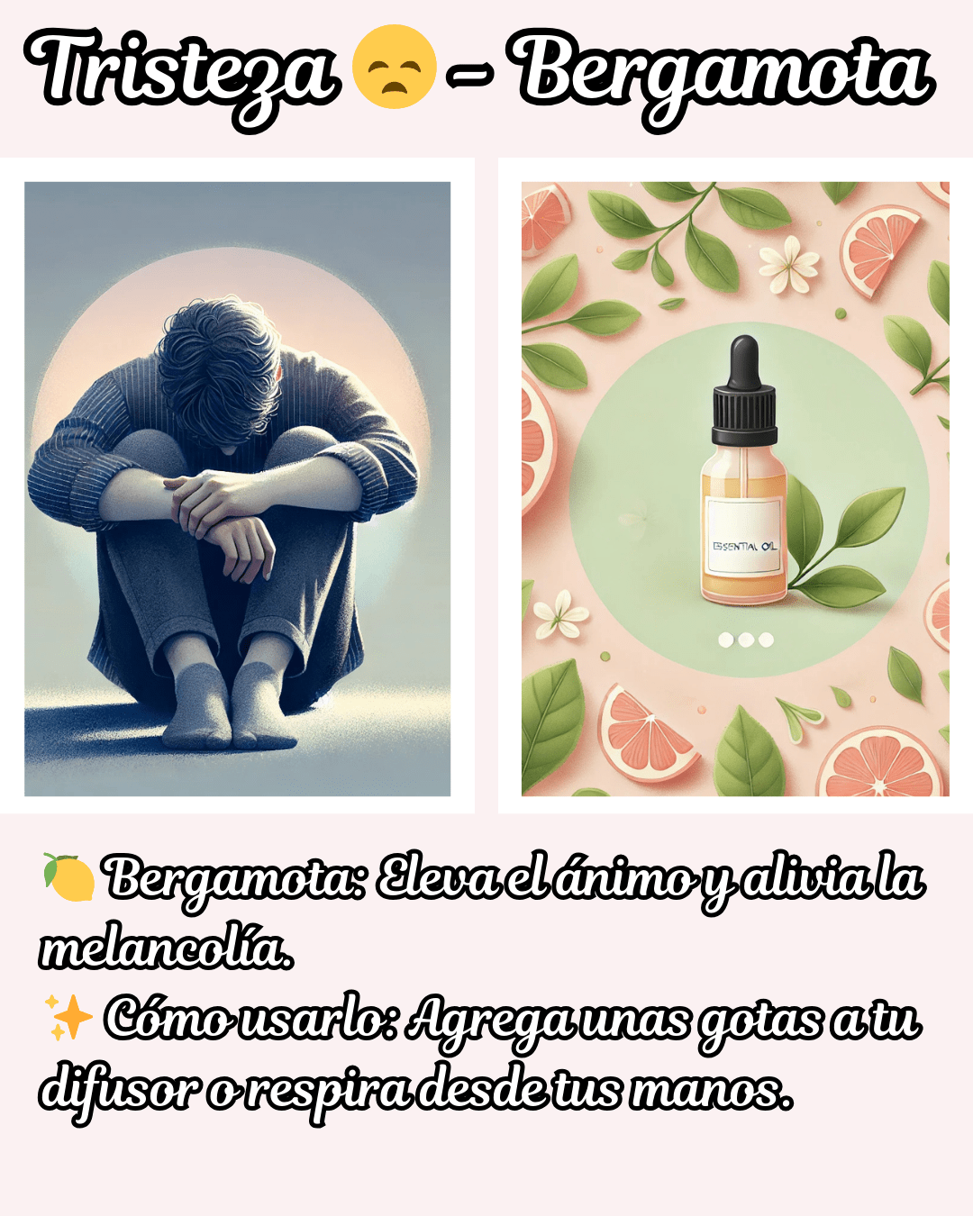 🍋 Tristeza → Bergamota: eleva el ánimo y disuelve la melancolía como un rayo de sol.